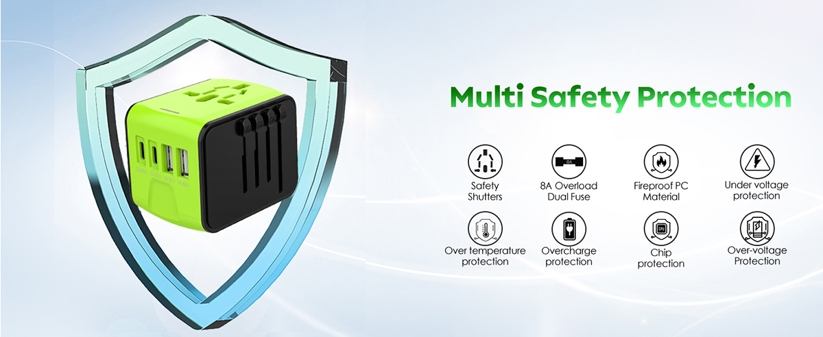 International Adapter Built-in Dual 8A Fuses & Multi Safety Protection