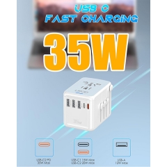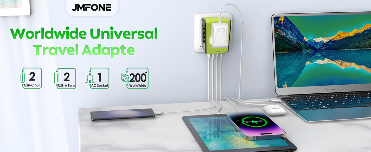 JMFONE Universal Travel Adapter with 2 USB-C and 2 USB-A Ports