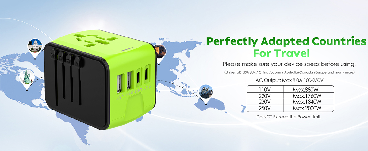 Adapters work in almost any Country with multiple ports